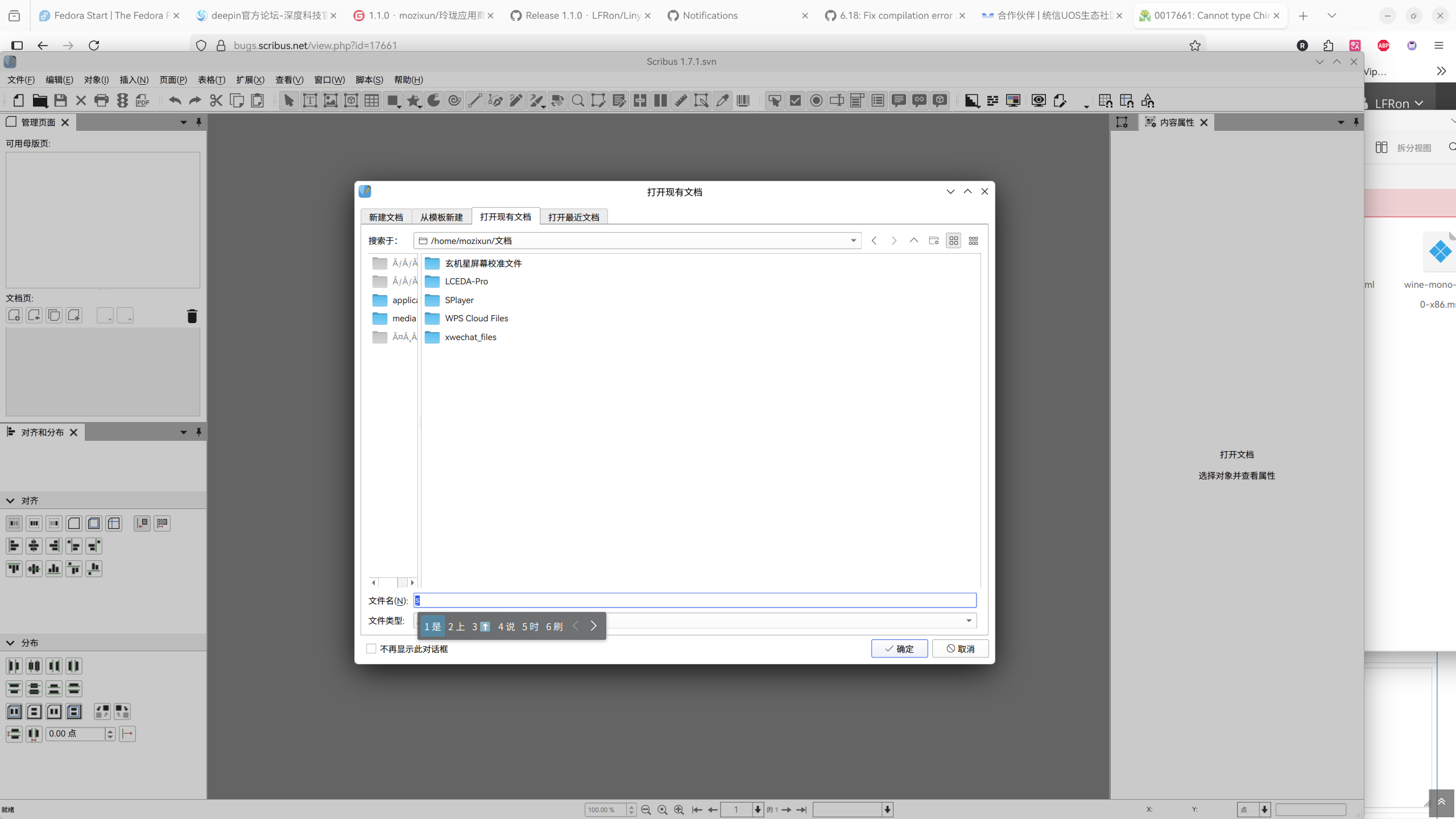 | Steps To Reproduce | 1. Install fcitx5 and fcitx5-pinyin and set the input environment like "GTK_IM_MODULE" and "QT_IM_MODULE" 2. Download the latest Scribus AppImage 3. Open and try inputing Chinese character through fcitx5 4. And you will find which cannot input | ||||