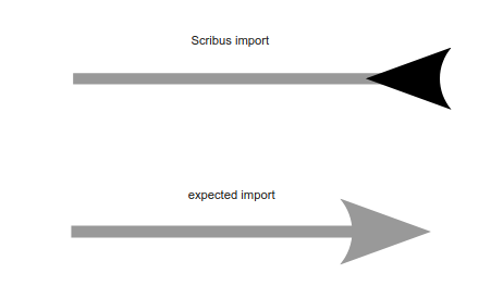 | Description | When arrow is imported to Scribus from svg file, then the arrow head is reversed and the colour is changed to black. It works both by drag and drop (file) or by File->Import->Vector menu. | ||||