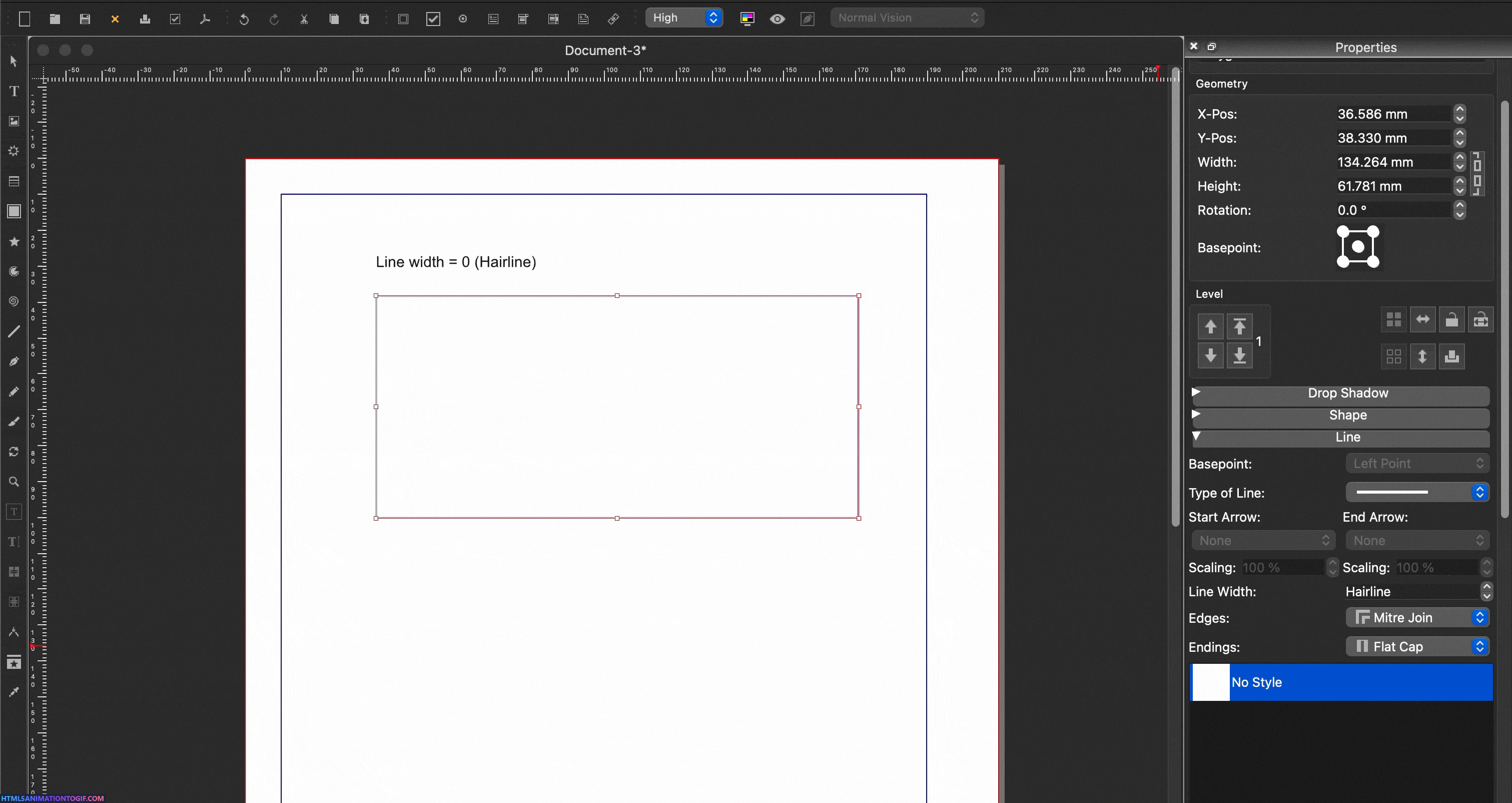 | Additional Information | Expected Result: The rectangle width should be exactly 180 mm when snapped to the guides with line width 0 (Hairline) even when stroke color is assigned. Actual Result: With a stroke color assigned, the resulting width is approximately 179.647 mm or 179.721 mm. When stroke color is set to None, the width is exactly 180 mm. | ||||