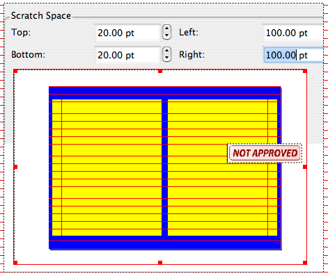 | Additional Information | Attached picture shows a suggested implementation in Preferences or Document Setup which allows the user to define scratch space by dragging handles rather than entering numbers. Document spread plus margins are depicted; user adjusts scratch space as one would adjust any frame. |