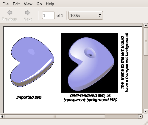 I get a bad PDF from this. xpdf says: [craig@albert tmp]$ xpdf svg_errors_evince.png Error: May not be a PDF file (continuing anyway) Error (0): PDF file is damaged - attempting to reconstruct xref table... Error: Couldn't find trailer dictionary Error: Couldn't read xref table and acroread just crashes (but I'm on FC4, and acroread is a little funny on FC4 anyway). [craig@albert tmp]$ pdfinfo svg_errors.pdf Error (0): PDF file is damaged - attempting to reconstruct xref table... Title: Keywords: Author: Creator: Scribus 1.3.0cvs Producer: Libpdf for Scribus 1.3.0cvs CreationDate: Mon Jul 11 22:08:00 2005 ModDate: Mon Jul 11 22:08:00 2005 Tagged: no Pages: 1 Encrypted: no Page size: 595.28 x 841.89 pts (A4) File size: 41332 bytes Optimized: no PDF version: 1.4 Evince can display the PDF, but does so incorrectly. Screenshot attached, along with the PDF and a screenshot of the display in Scribus. |