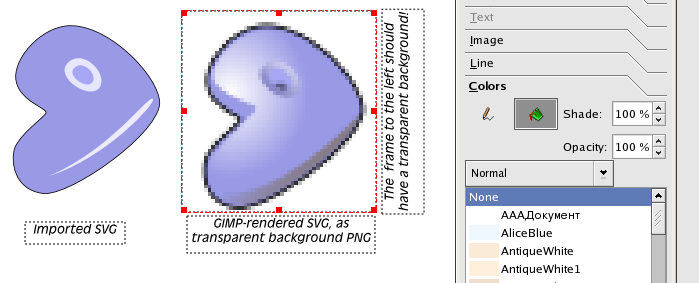 | Steps To Reproduce | Download open clipart or file attached open file in scribus look at image | ||||