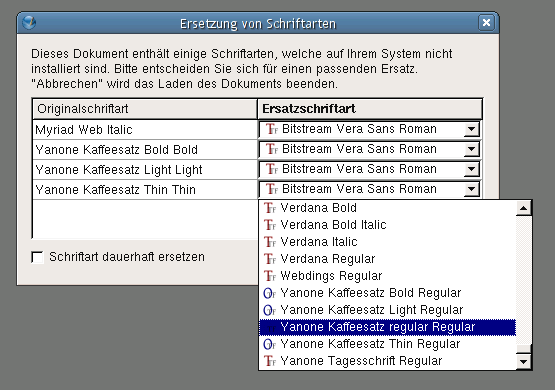 | Description | Creating a Doc on Win32 then importing into Linux results in appending Regular to the name of the needed fonts, so you get Times New Roman Regular Regular for example. | ||||