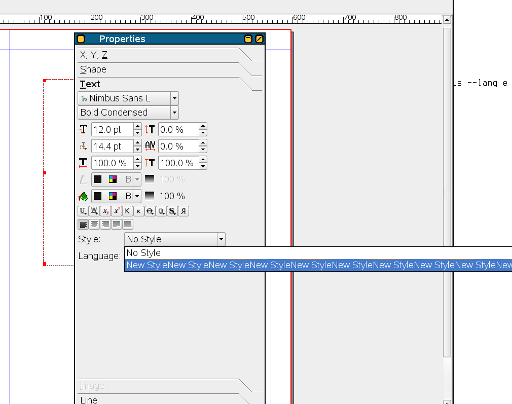 I have very large combo boxes when I use long style names (see attached verylongstylename.png). - 1.3.5svn. Joolsr, are you using 1.3.5svn or 1.3.3.x? Can you provide a screenshot, please? |
