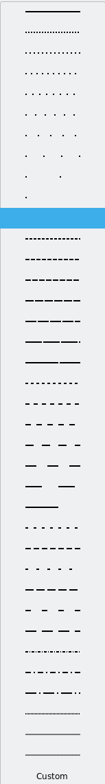 I'd like the amend this bug to: font outlines should allow line styles to be applied. |