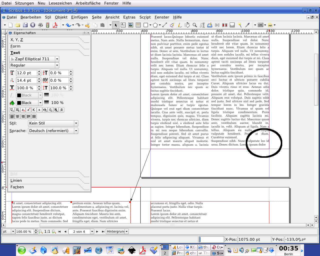 | related to | 0003482 | closed | Kunda | Only partial / delayed text update in linked frames when adjusting text properties. |