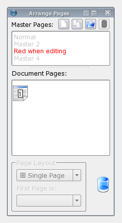 | Description | The Edit Masters window is useless, and it should be merged to the Arrange Pages under a new Pages window (taking over the old Arrange Pages). How it should work (look at the attached image for a visual mockup): -New, Duplicate, Open and Delete from Edit Masters can easily fit into Arrange pages. -Delete from Edit Masters could easily be removed and share GUI functionality with the Trashbin icon under Document Pages. -When editing Masters, other masters and document pages could be grayed out and the Master currently being edited could be highlighted as red to make it stand out. -Going into edit mode simply be a double-click on the master. -Goint out of edit masters mode would be, again, double-clicking another master page or document page. | ||||