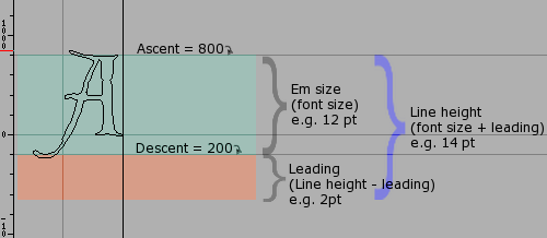 >>I also think that it should have a way to align on baseline on the Descent line. I find this confusing. The diagram is interesting but seems to lack important info. AFAIK, isn't baseline the bottom of the x-height? At least, this is how we look at it for a long time now. I am fully ready to revise my own idea on this with the help of documentation from various sources. Can you please provide them? I agree "leading" takes it from a different perspective. But we are already decades beyond lead now. Anyhow, ready to read on and to learn. We can never be sure for a very long time, can we?! |