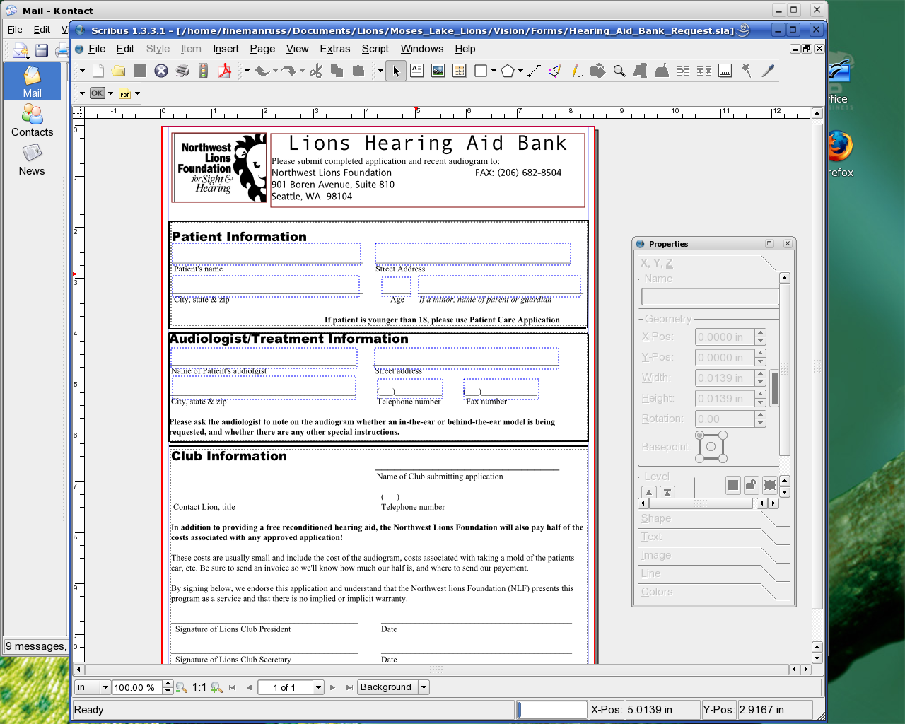 I just looked at the document. when I select a text box and select edit text, it shows a style sheet next to each line of text. (EX: heading-1, heading-2, text-1, text-2, etc). Is there something I should have done before I sent it to you. I have added more info to the document since sending it to you. The third text box also failed to move thefirst line down as specified in the heading style for it. Is there a way i can look at the document outside of Scribus and see if the styles are there? As for the mail list I thought I changed my email address when I moved 8 months ago. Do you know who I can email about it? |