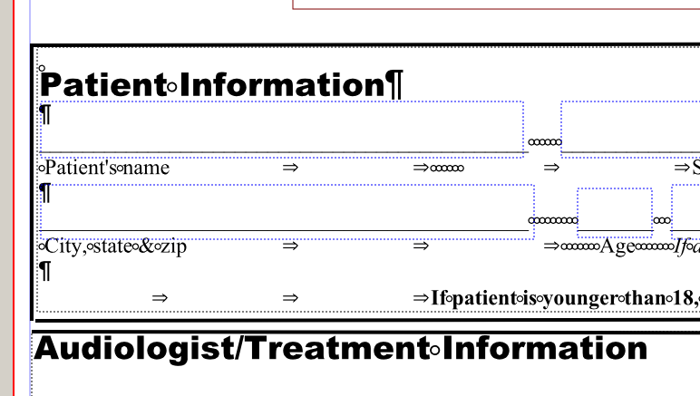 Which is the frame with the problem? If its the Patient Information one, theres a return at the beginning of the frame. |