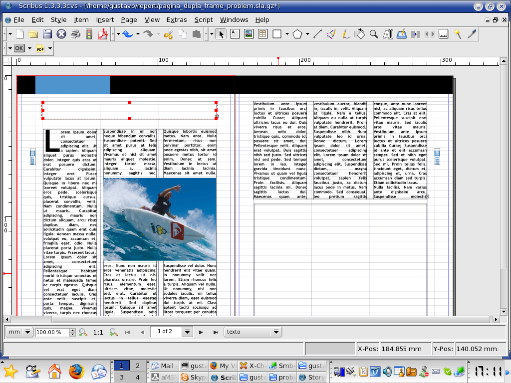 | Additional Information | This may be problematic in the following situation: - One has a text frame with coloured background and two colums inside - The title for the story has no columns, but should appear to be contained on that text frame - One creates a new frame for the title which will be stacked upon the other frame - One has to enlarge the title frame vertically, more than the characters from the title seem to imply --> the frames will have to overlap to produce the desired effect | ||||