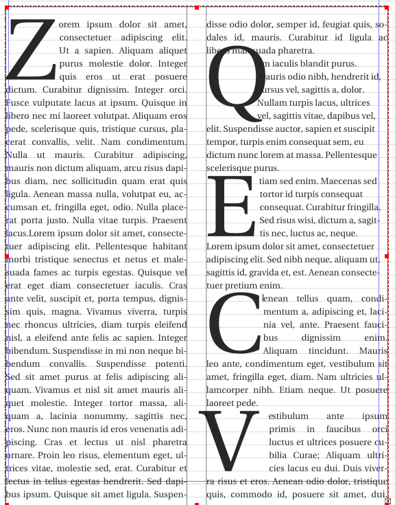 | Description | Depending on the font and character, some drop caps hang in the margin, like A, V and W. Some others don't reach the margin like K. Letters higher than the other caps such as J and Q sit on the baseline instead of hanging from the cap's height of the font and thus overlap the line above. For those two, the actual choice is clear: the constraint that wins is the number of line and the baseline. I would suggest that whenever the case happens, the number of line is increased (generally one extra line will do) and the drop caps hangs from the top instead. Also, the gap between the drop cap and the text varies a lot depending on the letter, from overlap like with J and Q to a tight gap such as with letter K to a wide gap such as with letter W. The workaround to this is nearly impracticable (and sometimes impossible) because you have to tweak each and every drop cap to get the desired result. This includes the manual tracking to the drop cap which is split into all the lines of the drop cap. I acknowledge manual tracking on *each* line of the drop cap is a welcomed addition (QXP doesn't allow to do that, for instance, only *all* the lines). But there is also a need to be able to manually set this distance to all the lines at once. | ||||