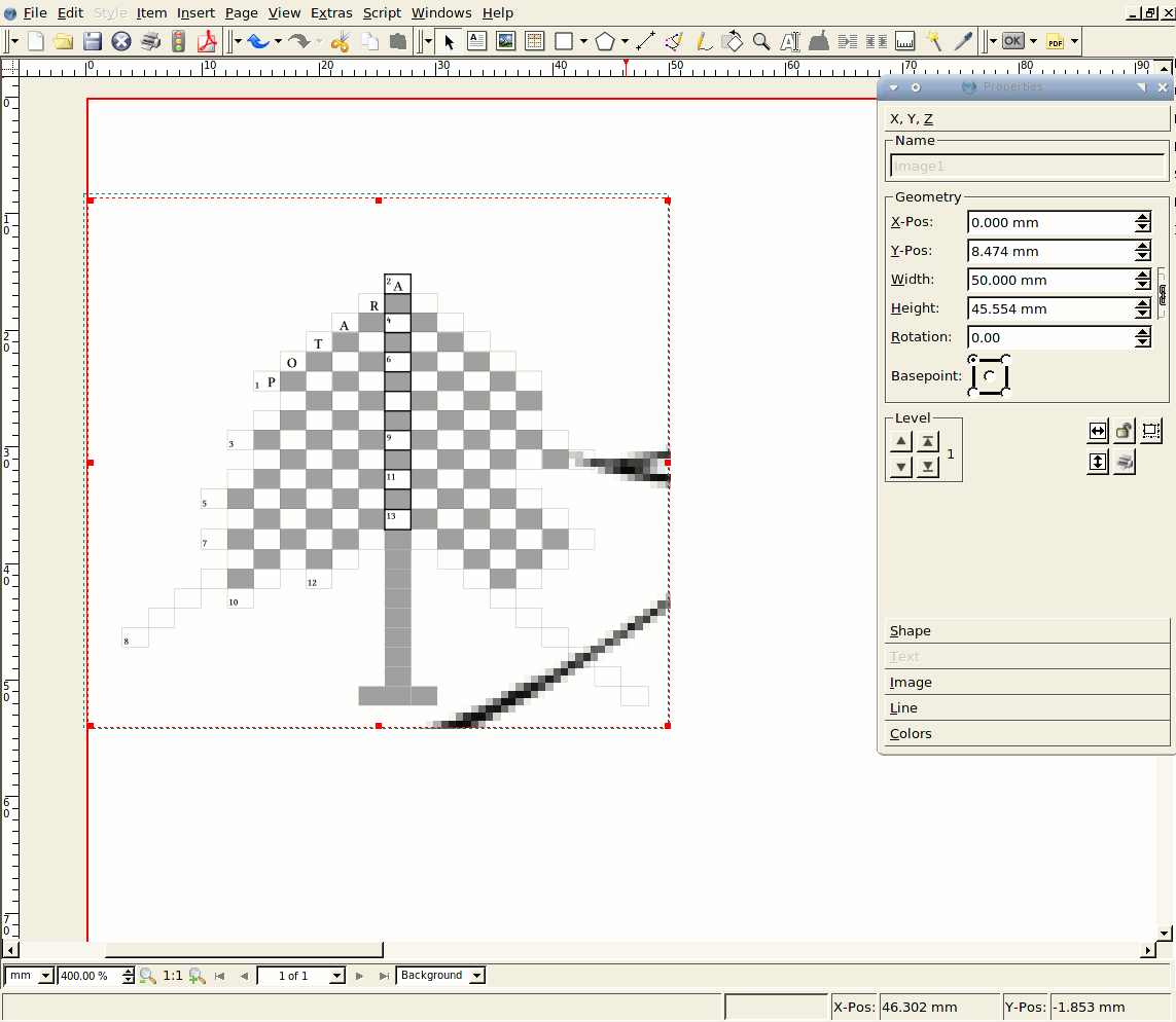 Screenshots and PDFs (before,resized,after undo) have been created with scribus-1.3.3.10-0.10439.2mdv2008.0.rpm. In the resized state the lines and the text seem to be ok, but the image is not scaled accordingly. After undo the image and the text is alright, but the lines are broken. |