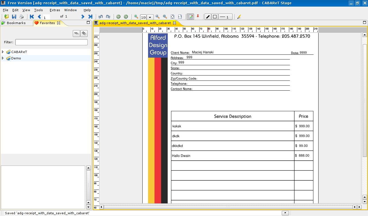 Dwain, don't feel cheated:) Judging by your related email, you're tied to Acrobat 5 (full version) solely due to it's capability of saving forms with form data. If yes, there is possibly a cure for you, namely Cabaret Stage 2.1 (commercial, free for personal usage). It's a Java application which allows to save PDF forms with included data. It's finally usable with Scribus forms after some initial teething problems, but thanks to fschmid and the cabaret guys they are over now, as far as I can tell. And surprise, your PDF form adg_receipt.pdf works very well with Cabaret, meaning I was able to fill and save it with data in Cabaret, and reopen it with data in Acrobat Reader 7.08. I'd suggest, just give it a go: http://www.cabaret-solutions.com/en/products/stage/download Just in case: if cabaret suits your taste and you encounter any troubles with Scribus pdf forms, just report them to their bug tracker: http://www.cabaret-solutions.com/bugtracker/login_page.php -- the cabaret devs are highly responsive and removed 2 scribus forms's related bugs I'd reported to them very quickly. Don't forget to drop them a line they should go GPL:) |