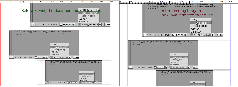 | Description | FEATURE PART OF THIS REPORT (originally taken from 0008138) I'm currently creating some pages for a slideshow whereby images should be centrally placed. In order make them as central as possible, and so I can easily change them to different sizes, I simply set the base point to the centre and the images are displayed nicely in the middle of the frames. However, when I close down and then reopen the document all the base points have changed back to the top-left and as such all the images are now anchored to the top-left. With a 40 page document it is frustrating have to change them all every time I open and close it. As a frame's base point can change how a document looks, I think its value should be stored in its .sla file to allow consistency between sessions. | ||||