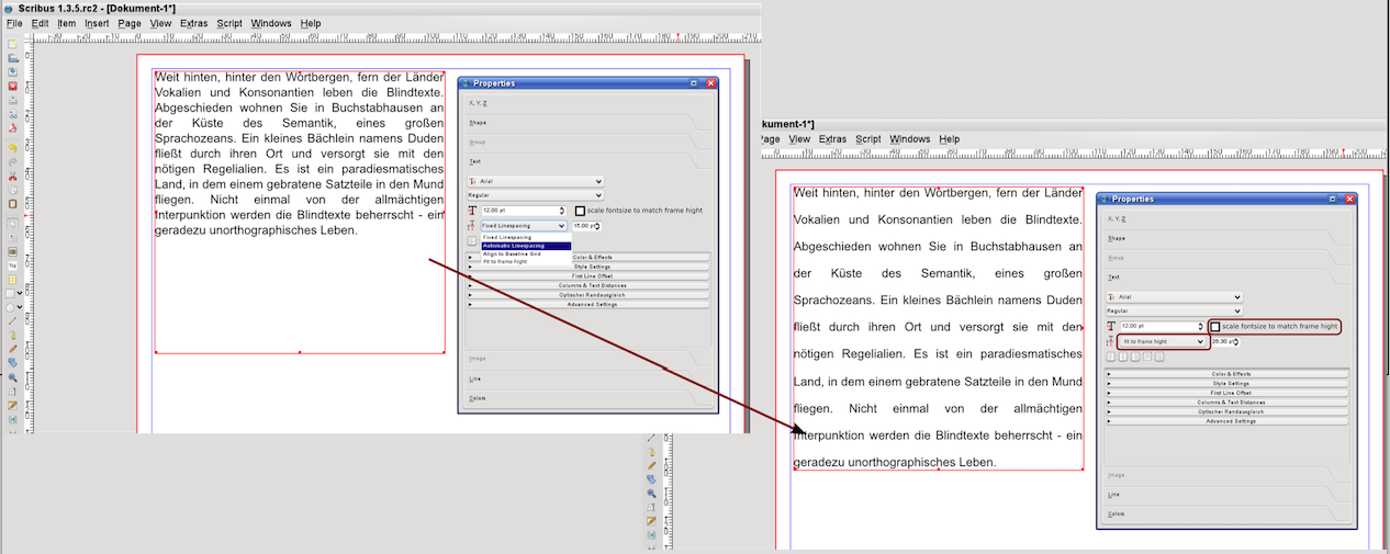 | Description | It should be possible to fit a given text to the textframe by either specifying the line space and let the font size calculate or by specifying the font size and let the line space calculate. | ||||