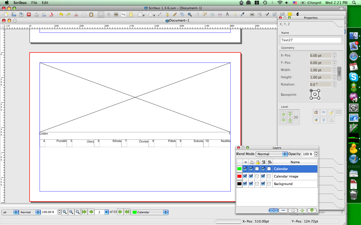 Actually that's the way I think it should look like (maybe apart from the weekday alignment). The script doesn't add much layout, as this can be done from the master page anyway. See http://www.unet.univie.ac.at/~a0108192/wordpress/en/katalog/gebrauchsgrafik/kalender/ for what the final result can look like. BTW, I noticed that someone on the list said he had customized the wizard script to import ical files, and I tried to reach the person to suggest a merge of our modifications, but unfortunately I got no reply from him (apparently due to a very picky mailserver): http://lists.scribus.info/pipermail/scribus/2010-January/036637.html |