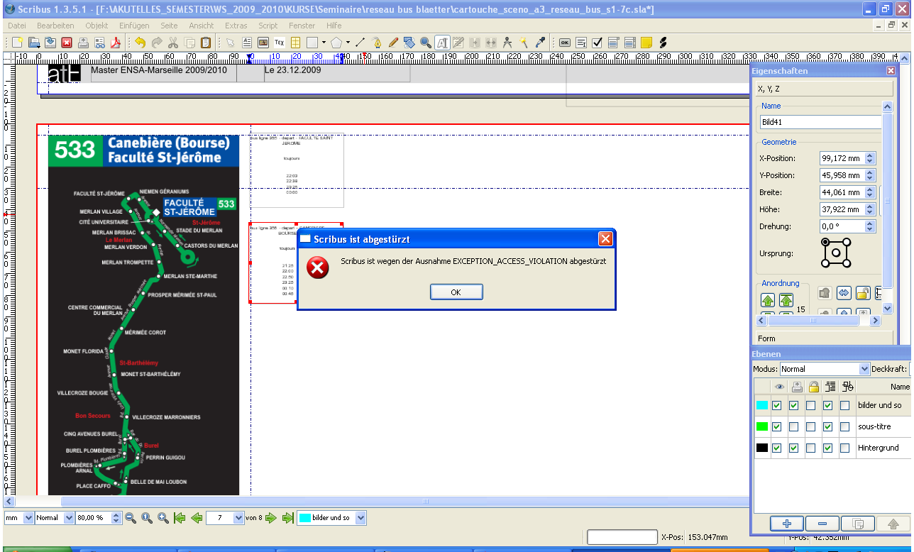 | Description | i copied an image frame with a pdf loaded in it. when i tried to paste it on the same page of the document the program crashed. the error message "Scribus ist wegen der Ausnahme EXCEPTION_ACCESS_VIOLATION abgestürzt" was shown.