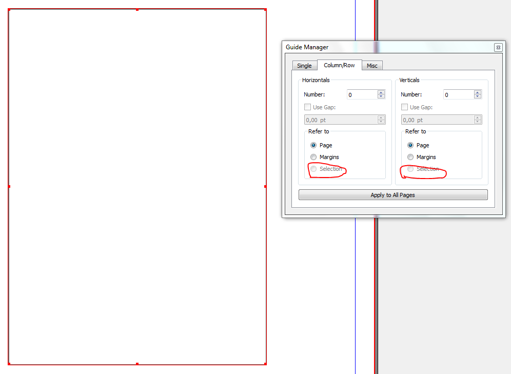 1.4.0 rc1 The Selection on the Guides Manager must be immediately activated as soon as the selected object (rectangle). Example: 1. Open the Guide manager 2. Activate the Rectangle The Selection on the Guides Manager is active after the action: 1. Create a document 2. Create a rectangle 3. Open the Guide manager 4. Activate the Rectangle 5. Click the Misc on the Guides Manager 6. Click the Delete Guides from Current Page on the Misc 7. Click the Collumn/Rows on the Guides Manager 8. Click the Back Why do things: 5. Click the Misc on the Guides Manager 6. Click the Delete Guides from Current Page on the Misc 7. Click the Collumn/Rows on the Guides Manager 8. Click the Back ? |