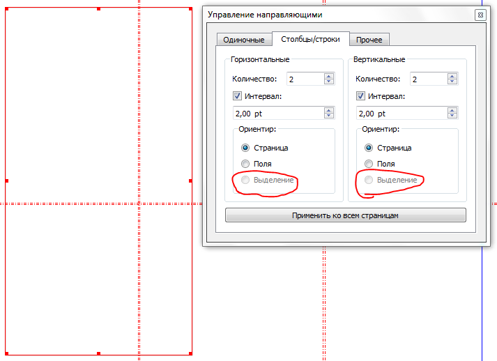 Error is not fatal. For the user-designer is very inconvenient. How to write a manual for Scribus similar sequence of actions: 1. Create a document 2. Create a rectangle 3. Open the Guide manager 4. Activate the Rectangle 5. Click the Misc 6. Click the Delete Guides from Current Page 7. Click the Collumn/Rows 8. Click the Back Selection was activated This should be repeated every time you open a document. It is not logical. Unnecessary actions: 5, 6, 7, 8! |